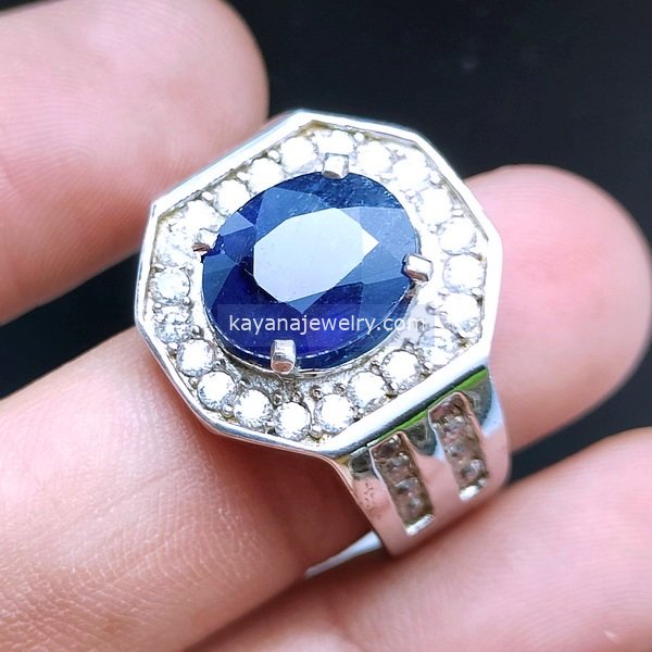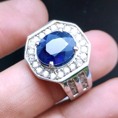 name : NATURAL BLUE SAPPHIREmeasurements :11,1 x 9,1 x 7,5 MMweight : 5,46 caratsshape : ovaltransparency : transparentcolor : bluecutting style : mixed cutrings : rhodium silver + cubic zirconia