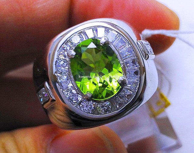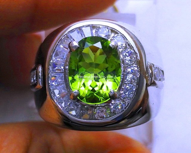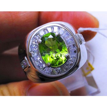 Name : NATURAL PERIDOT. measurements : 10,0 x 7,6 x 6,0 MM. weight : est 3 carats. shape : oval. transparency : transparent. color : green. clarity : lightly inclusion. cutting style : mixed cut. rings: rhodium silver + cubic zirconia. comments : non treatments detected , natural color ... berkilau-kilau blink-blink ..ring microsetting top